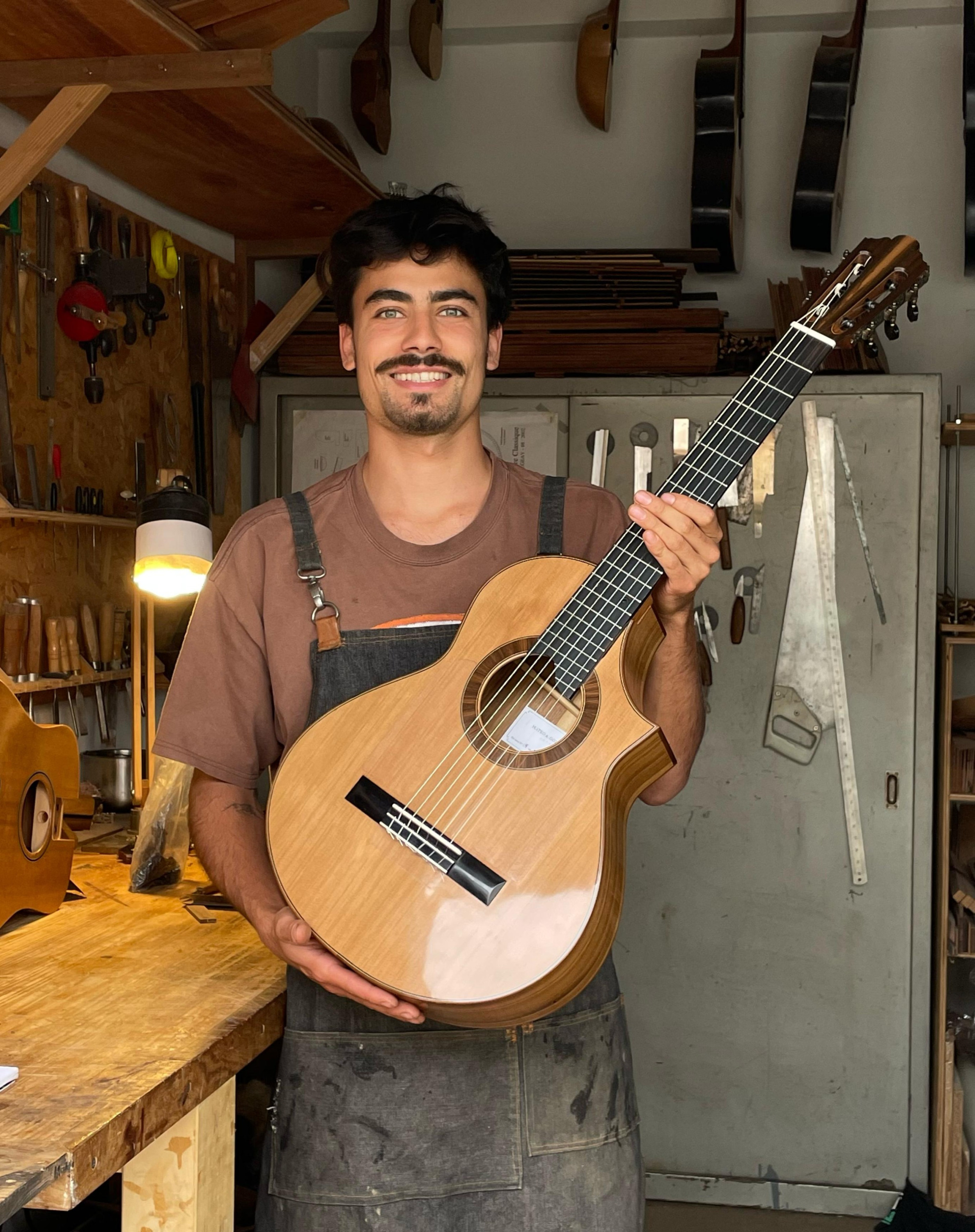 Mi interés por la luthería comenzó en 2015, cuando encontré un libro de mi padre sobre la construcción de una guitarra. Sin embargo, fue en 2016 cuando mi interés se convirtió en realidad al conocer la Escuela de Luthería de Córdoba, donde construí mi primer instrumento y descubrí una gran inspiración.